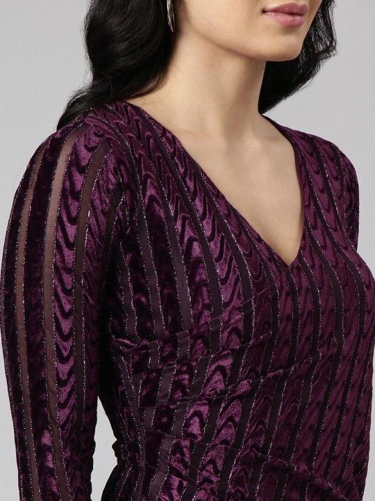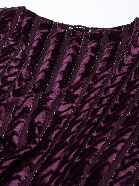 - Black striped self-design with asymmetric neck